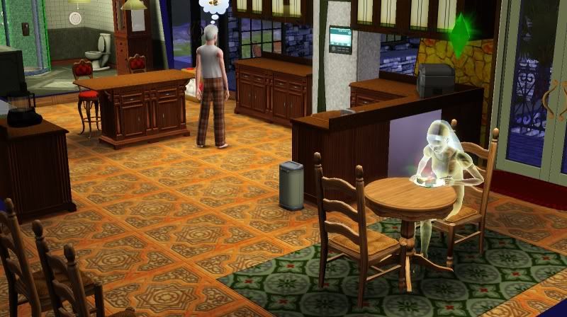 But one night, much to her surprise, she smelled the most wonderful thing that had passed her nose since that fateful day. She floated into the kitchen to see an aged Mortimer puttering about the kitchen, a plate of... something... sitting on the table behind him...